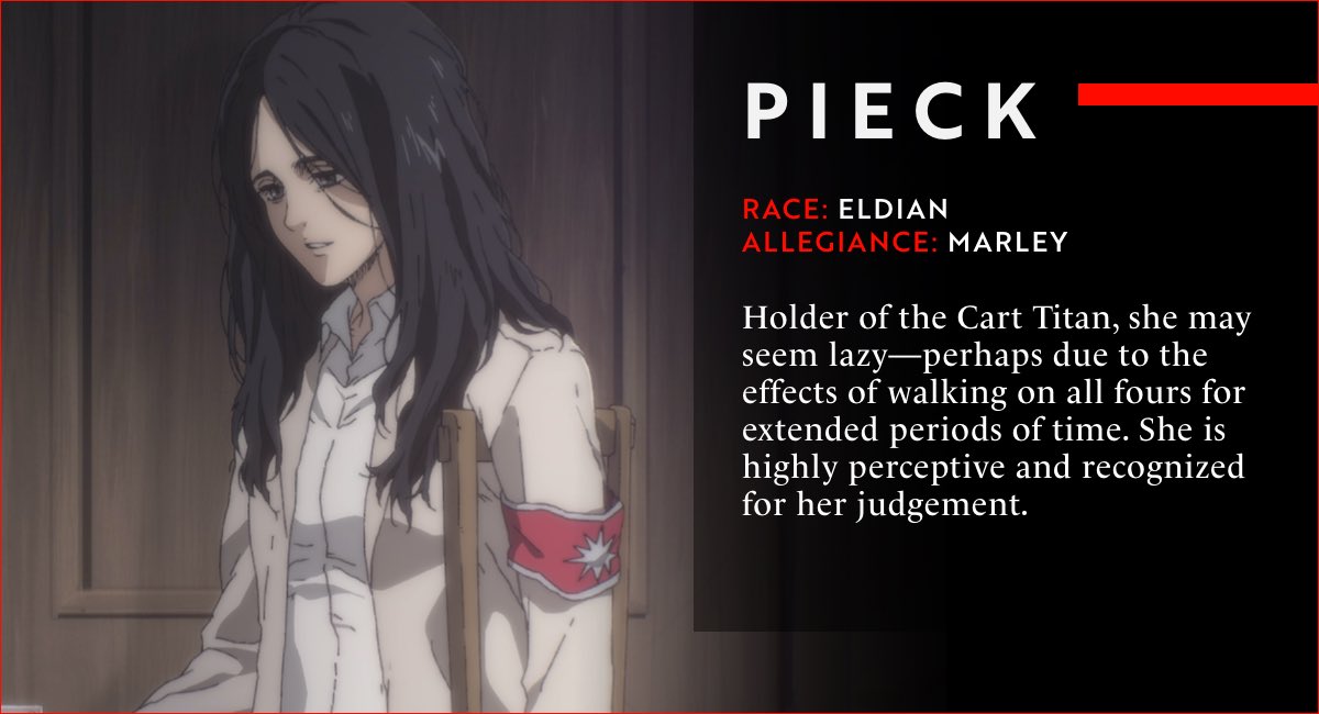 Attack On Titan Wiki On Twitter Attack On Titan The Final Season Character Bios Via Funimation - Eventually pieck noticed and now pieck keeps teasing him whenever you're around and he would be embarrassed.